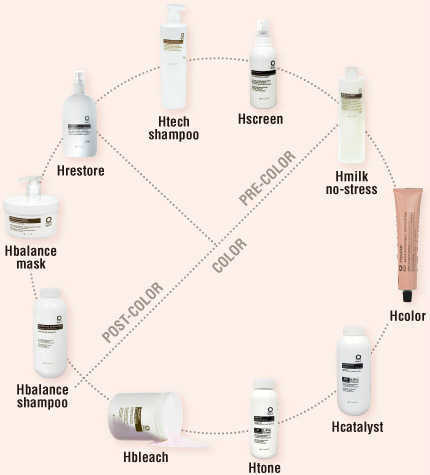 Hcolorは髪に栄養を与えるヘアカラー剤で、その効果は継続的です。毛髪繊維を大切にし、痛みなどから毛髪構造を保護し、アンモニアを使わないであざやかな色彩を得ることができます。アンモニア・フリーの配合は、気化したアンモニアを吸収することによって引き起こされる呼吸器系のアレルギー誘発の可能性を抑え、体全体にその影響を受けるのを低下させます。